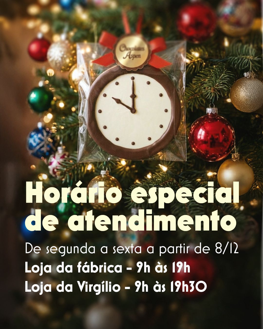 ⏰✨ Horário especial de atendimento para adoçar o seu Natal! 🎄🍫 A partir de 8/12, nossas lojas estarão com horário...