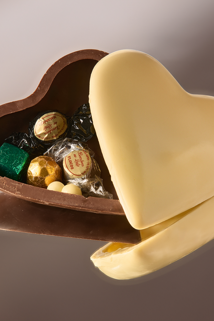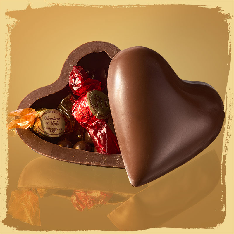 Corações de Chocolate Corações de chocolate recheados com bombons selecionados, unindo sabor, delicadeza e uma apresentação encantadora. Ideais para presentear e surpreender em momentos especiais.
