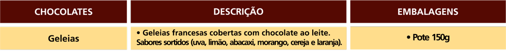 Chocolate artesanal recheado com geleia delicada, unindo doçura equilibrada e sabor suave em uma combinação clássica e irresistível.