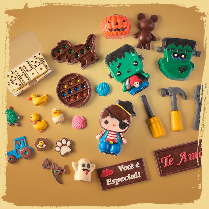 Chocolates artesanais cuidadosamente pintados à mão, com temas exclusivos e acabamento delicado. Uma verdadeira união de sabor e arte para presentear em datas especiais.